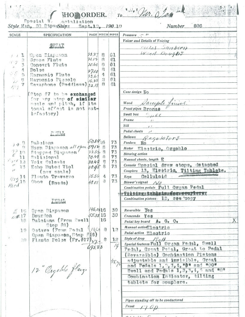 Diapason 16 Bourdon 16 Dulciana (Sw) 8